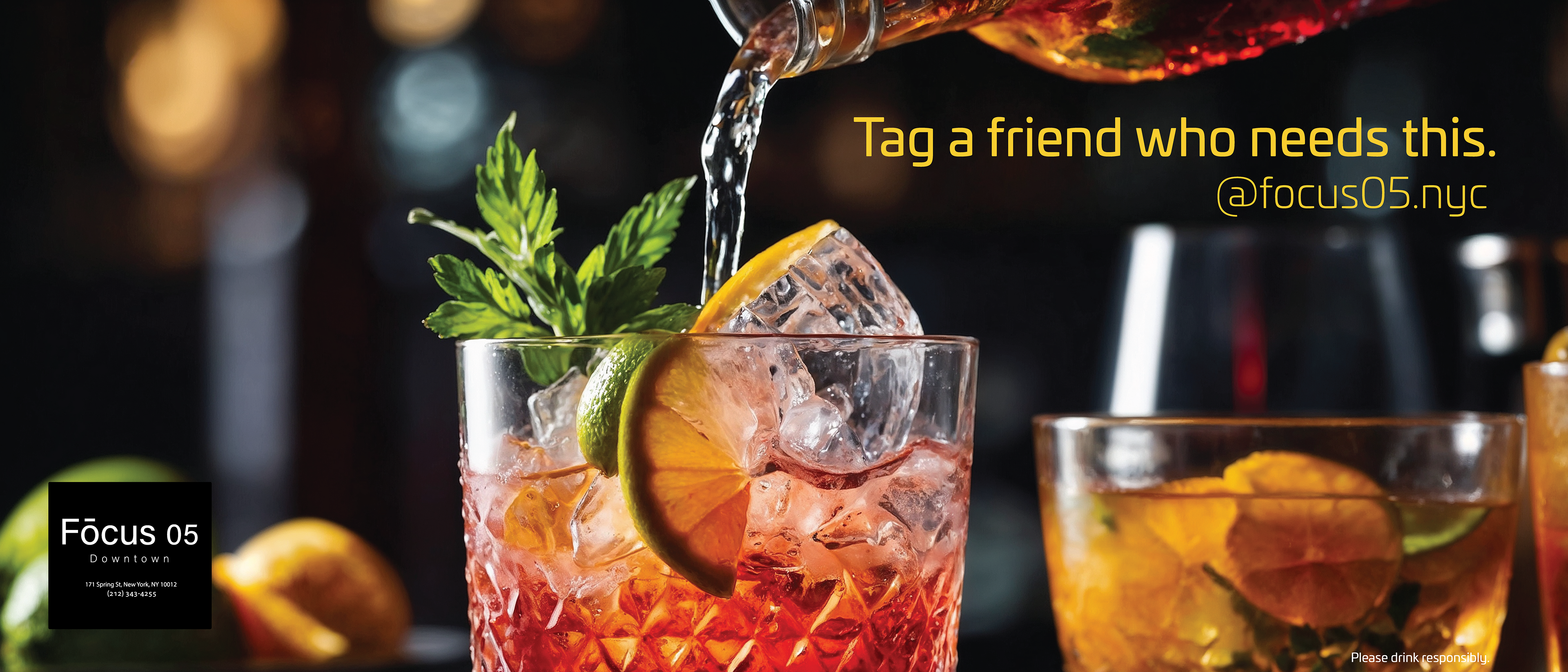 This project was an assignment focused on designing a large-format subway banner advertisement for a fictional high-end New York City cocktail lounge and restaurant, Focus 05. The primary goal was to create a compelling, high-impact advertisement that could instantly capture the attention of busy commuters and convey a sense of luxury and quality. I achieved this through the use of cinematic, rich-colored imagery focusing on a perfectly garnished cocktail being poured, setting a sophisticated, dark-toned atmosphere. The advertisement utilizes a modern, engaging call-to-action—”Tag a friend who needs this”—which prompts social interaction and sharing, alongside clear placement of the @focus05.nyc handle. This assignment successfully demonstrates my ability to design effective advertisements for specific transit media constraints, blend high-quality product photography with concise, persuasive copy, and establish a luxurious brand mood through expert use of lighting and composition.