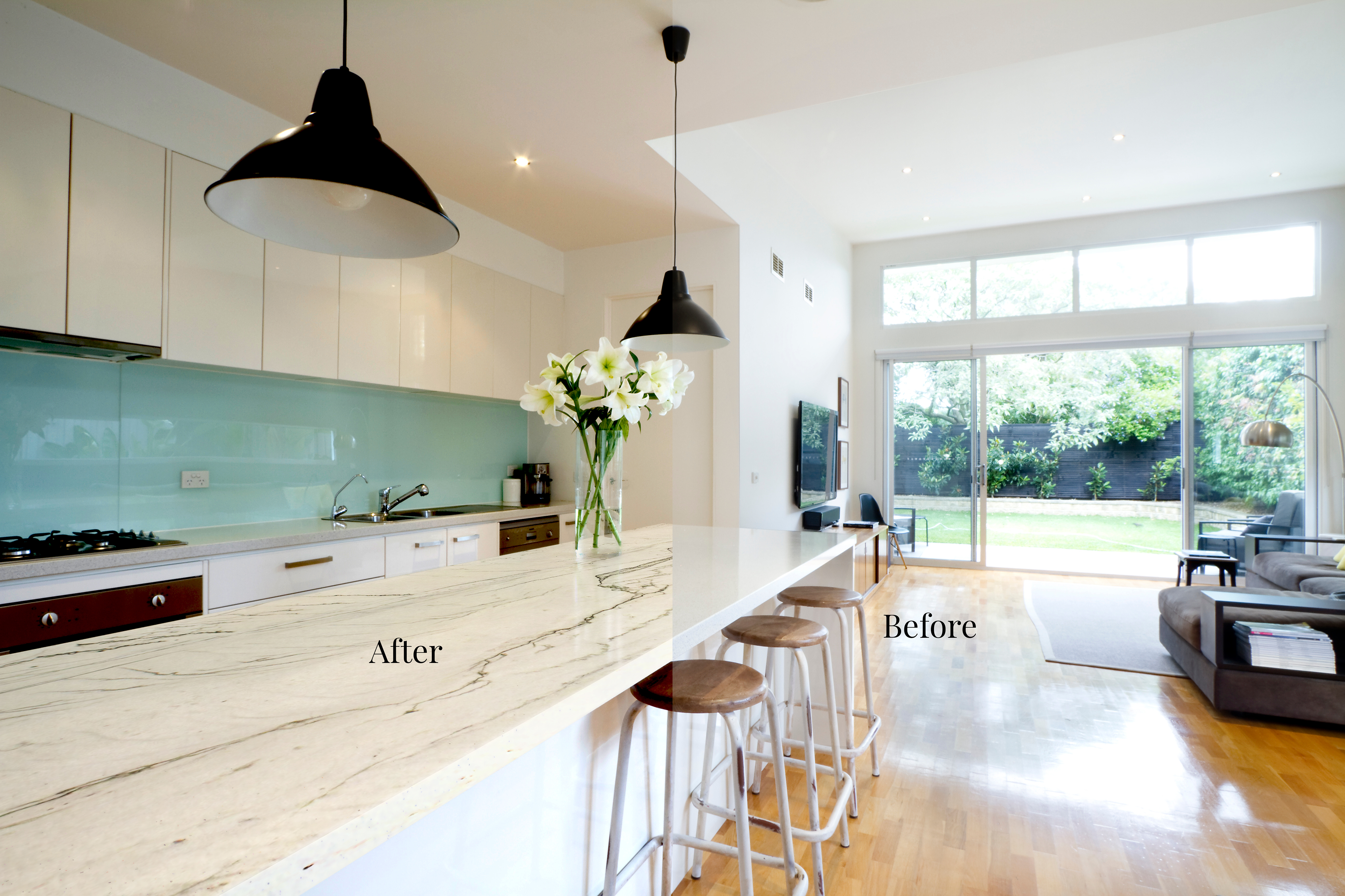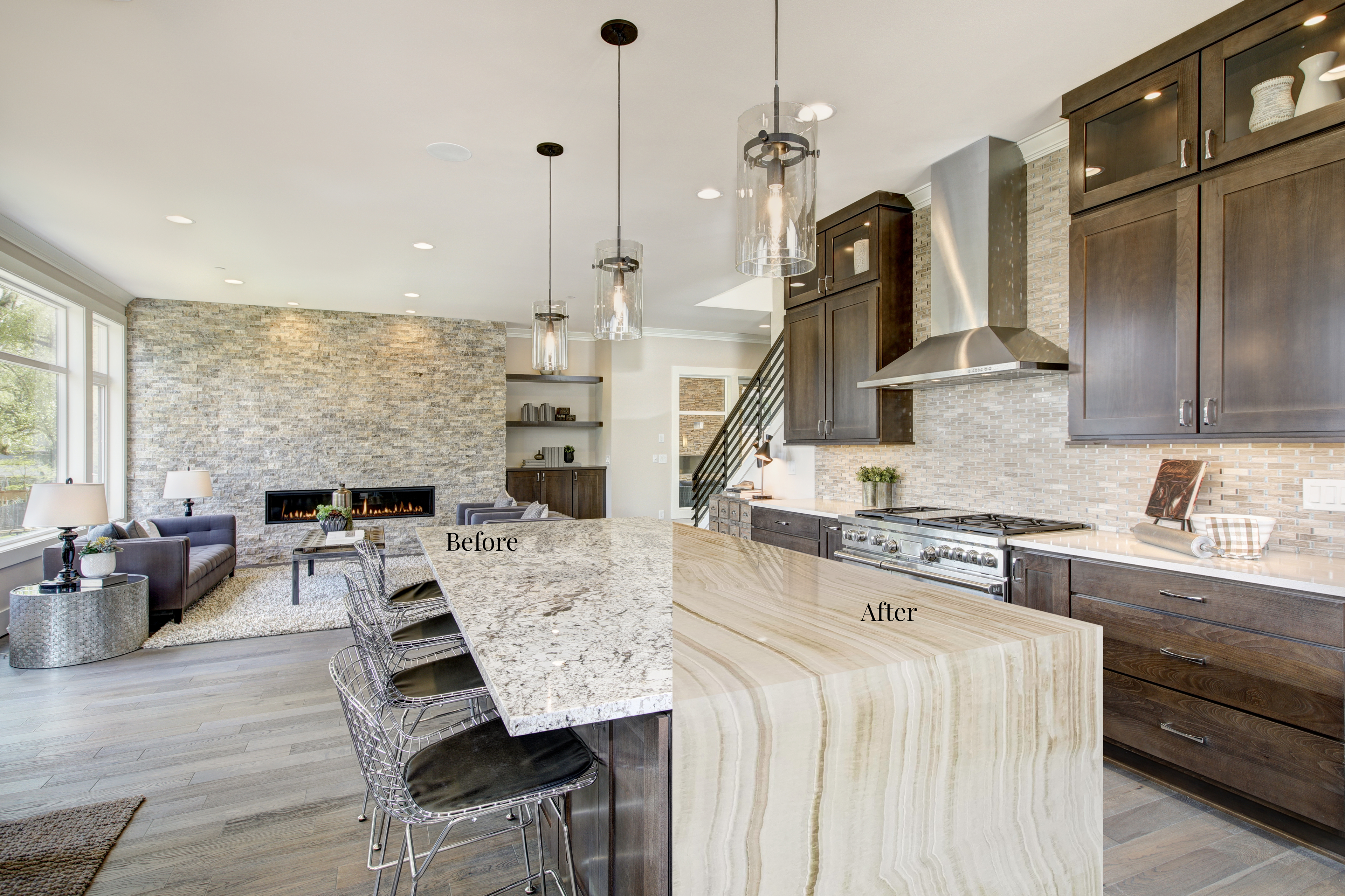 I precisely transform surfaces—such as kitchen countertops, bathroom vanities, fireplace surrounds, or accent walls—to showcase the client’s unique stone pattern.